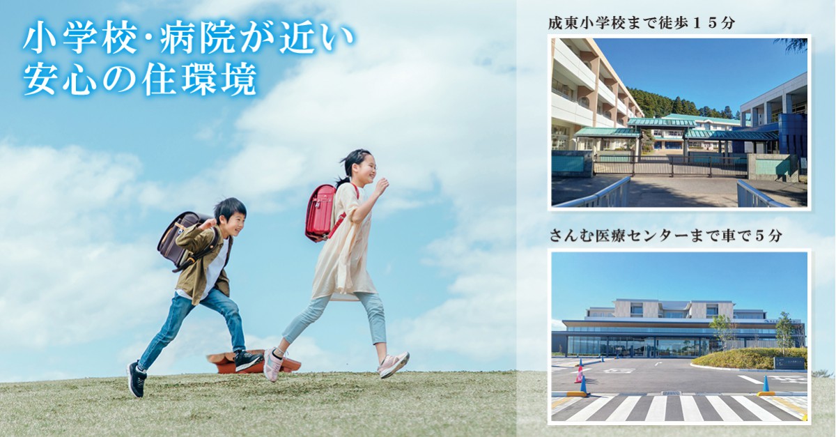 成東小学校まで徒歩15分(1065m)、さんむ医療センターまで車で5分(2018m)。住環境が整った成東の人気エリアで豊かな暮らしをしてみませんか!
