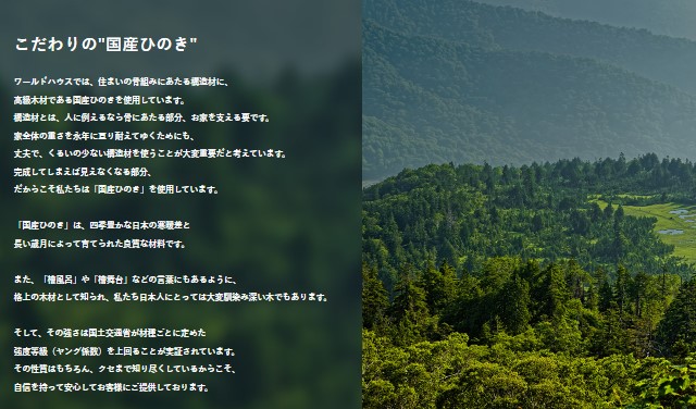 ▶ワールドハウスのこだわり「国産ひのき」について