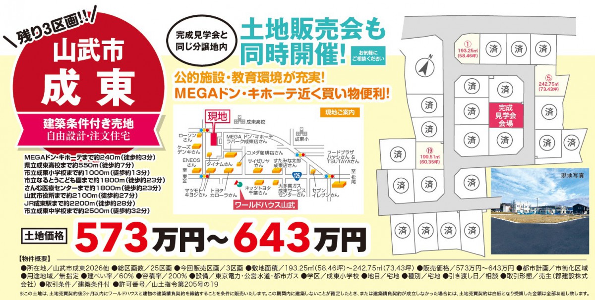 完成見学会や土地分譲地のすぐ近くに、ワールドハウス山武営業所があります。