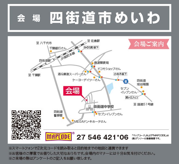 会場は四街道中学校の近くです。とってもわかりやすいところです。