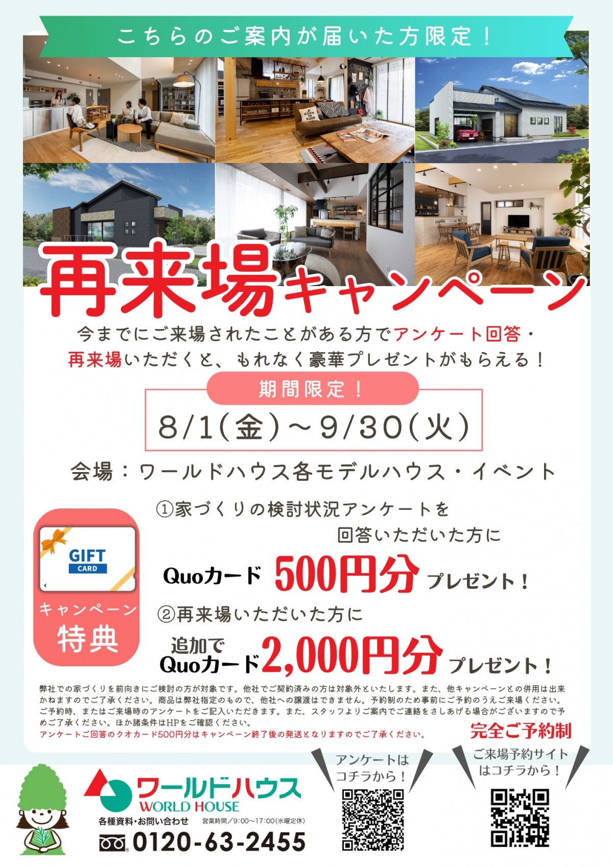 期間中の事前アンケート&ご予約のうえ再来場いただいた方に、QUOカード最大で2,500円分をプレゼント!