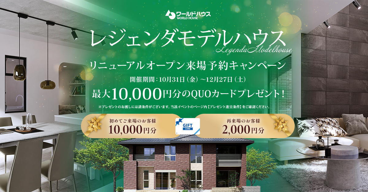 【旭住宅公園(レジェンダ)モデルハウスリニューアルGRAND OPEN 記念!】全展示場対象・ご来場予約キャンペーン開催