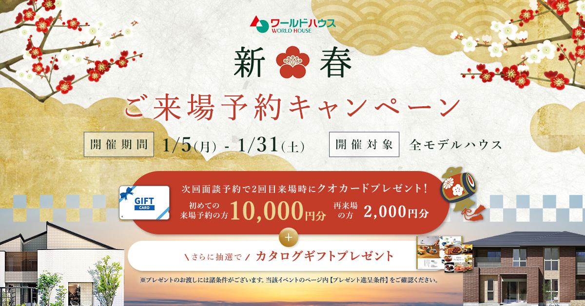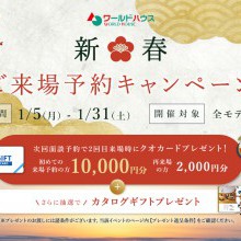 ・本キャンペーン期間中にワールドハウスのHPにてご予約の上、1月31日(土)までにご来場された方