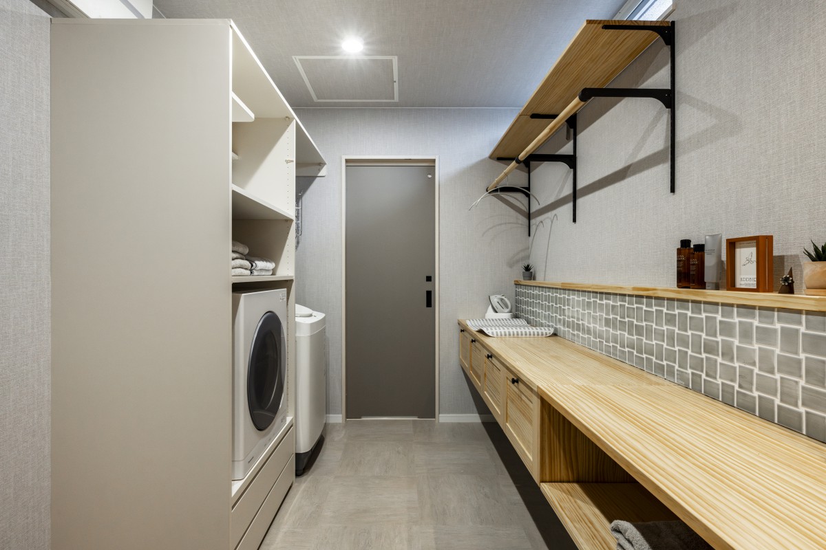 1階に配置したファミリークロゼットを中心に、洗濯動線を最短化。平日もゆとりが生まれる暮らしを実現しています。