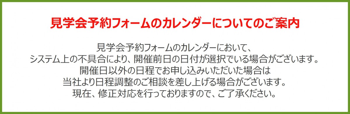 ・見学予定日の前々日17:00までに見学予約の申込みをされた方が対象になります。