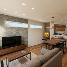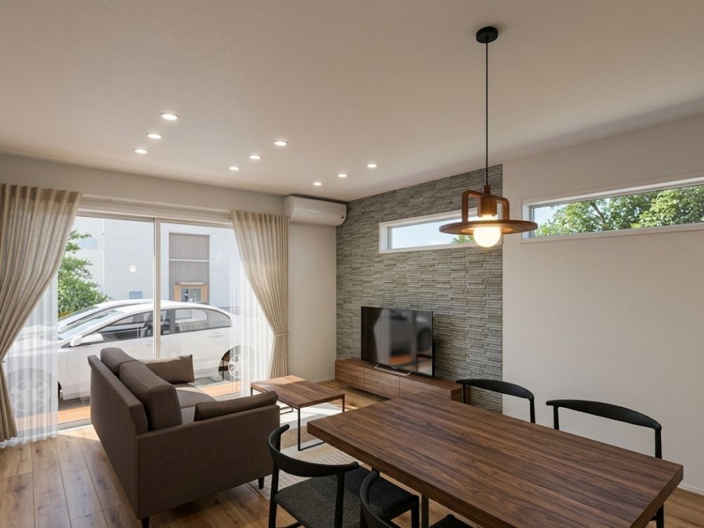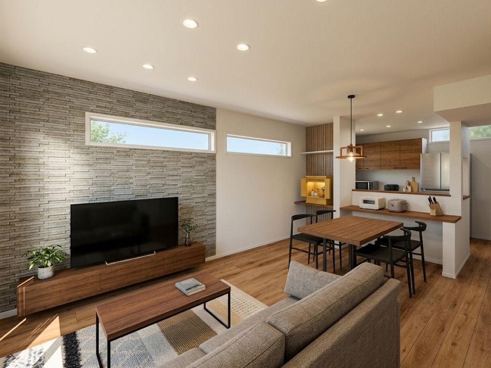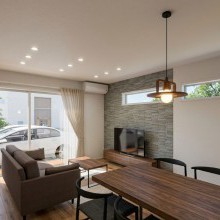 約16帖の広々としたLDK空間は、自然と家族が集まる居心地の良い場所。高断熱仕様と大容量5.34kWの太陽光パネルの組み合わせで、冷暖房効率もバツグンです。広い空間でも月々の光熱費をしっかり抑えながら、1年中快適な家族の時間を満喫できます。