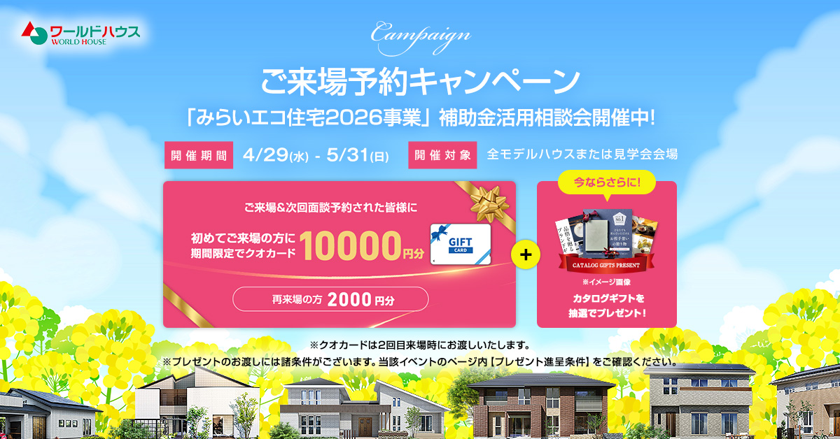 キャンペーン中ワールドハウスに初めてご来場の方には