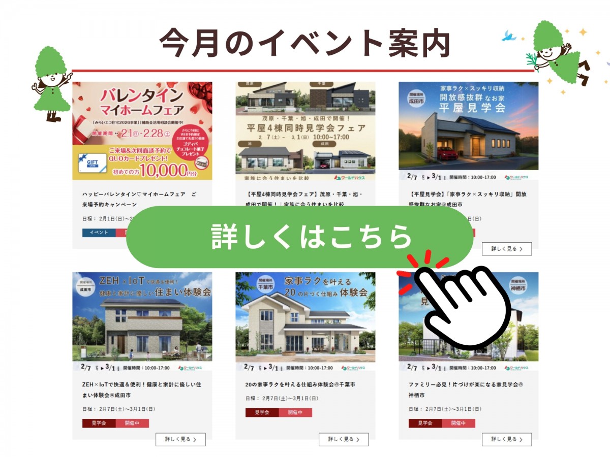いま話題の「みらいエコ住宅2026事業」補助金のご相談もお任せください! ご来場の際にはお建替えやすでに土地を取得されている方は土地の情報、土地探しからの方はご要望をお知らせいただけるとご相談や対応がよりスムーズに。
