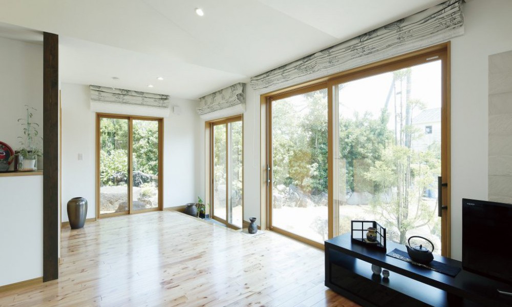 広々とした空間が欲しくて、ドアなどの仕切りは最小限にしました。