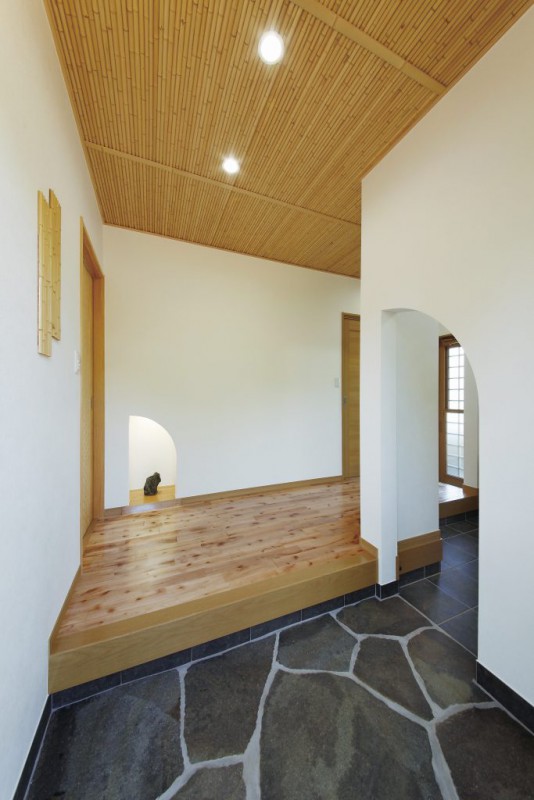 鉄平石の土間に珪藻土の壁、竹の天井。時が経つほどになじんでいく、それぞれの素材感が楽しみです。