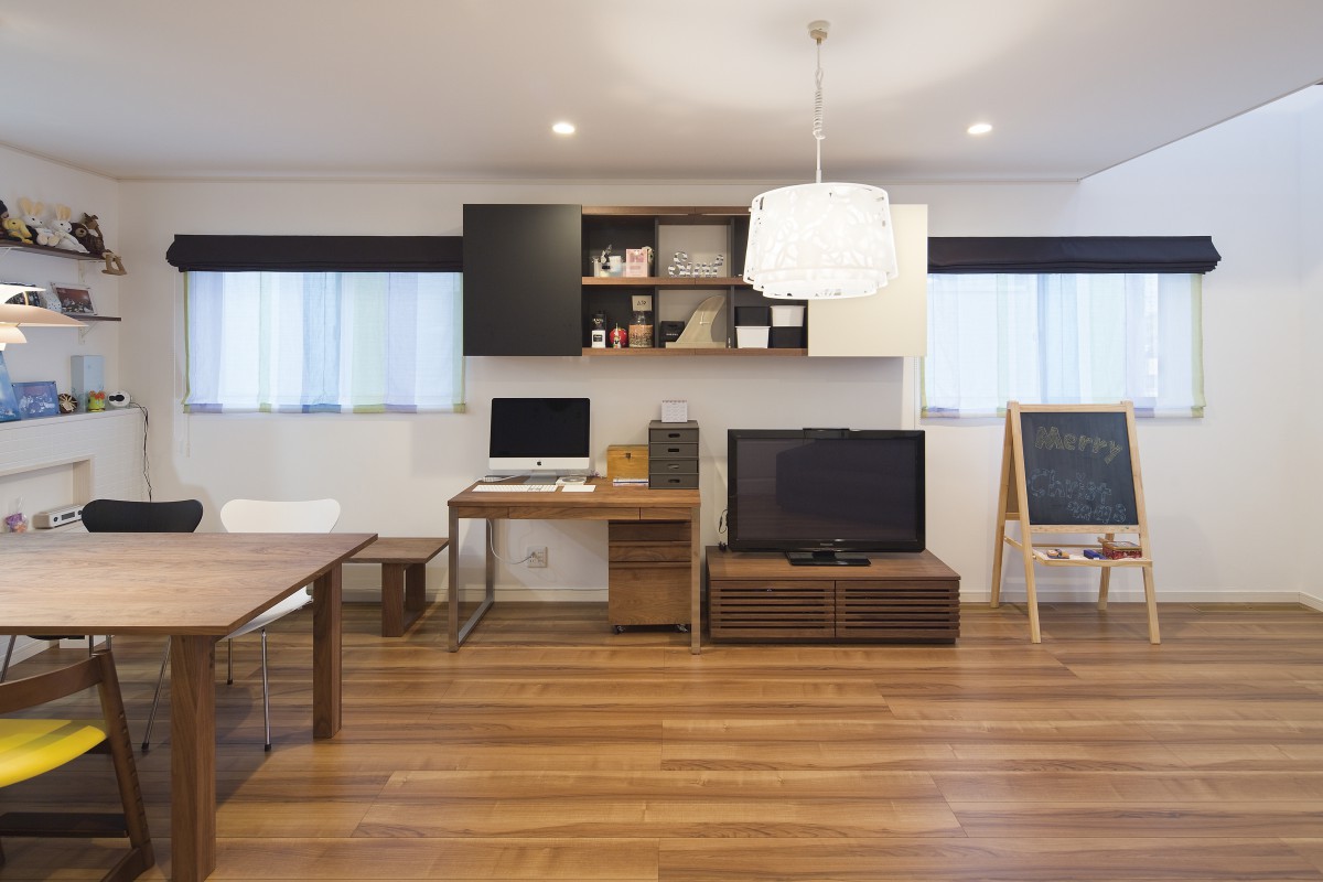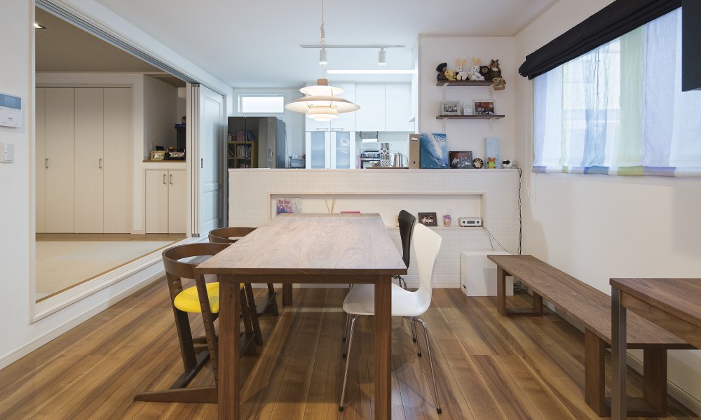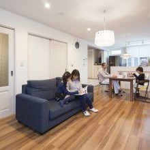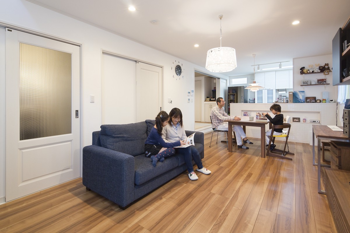 オープンなキッチンから家族が見守れる配置で、家族が自然と集まるLDKに。