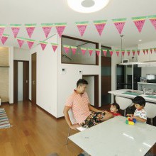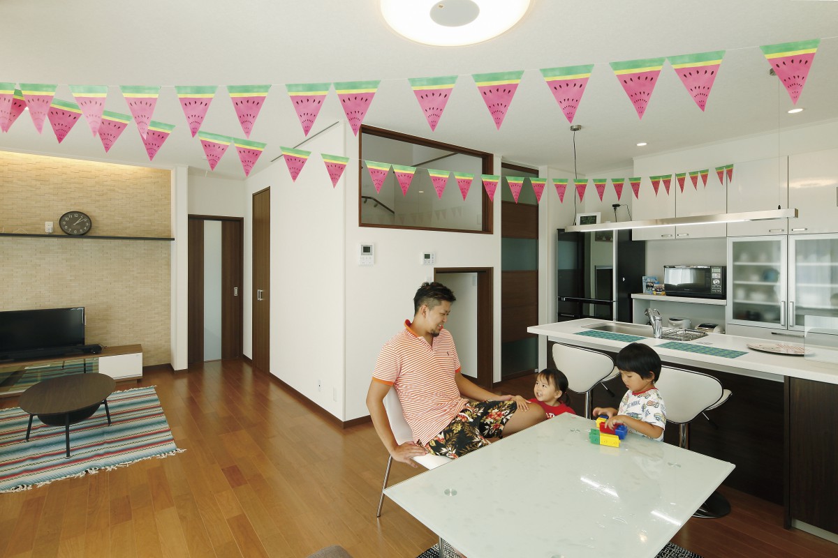 ボルダリング壁+真ん中納戸+太陽光発電の工夫がいっぱい広々住まい