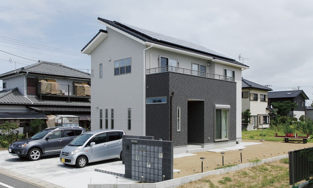 屋根には太陽光パネルを設置。採光や風通しを計算した様々な小さい窓が開放感を