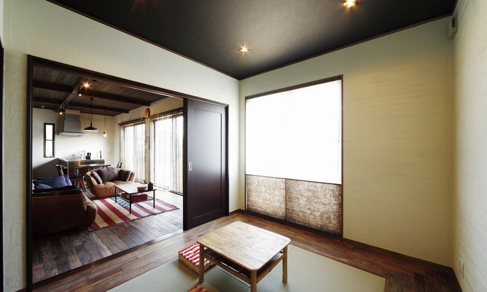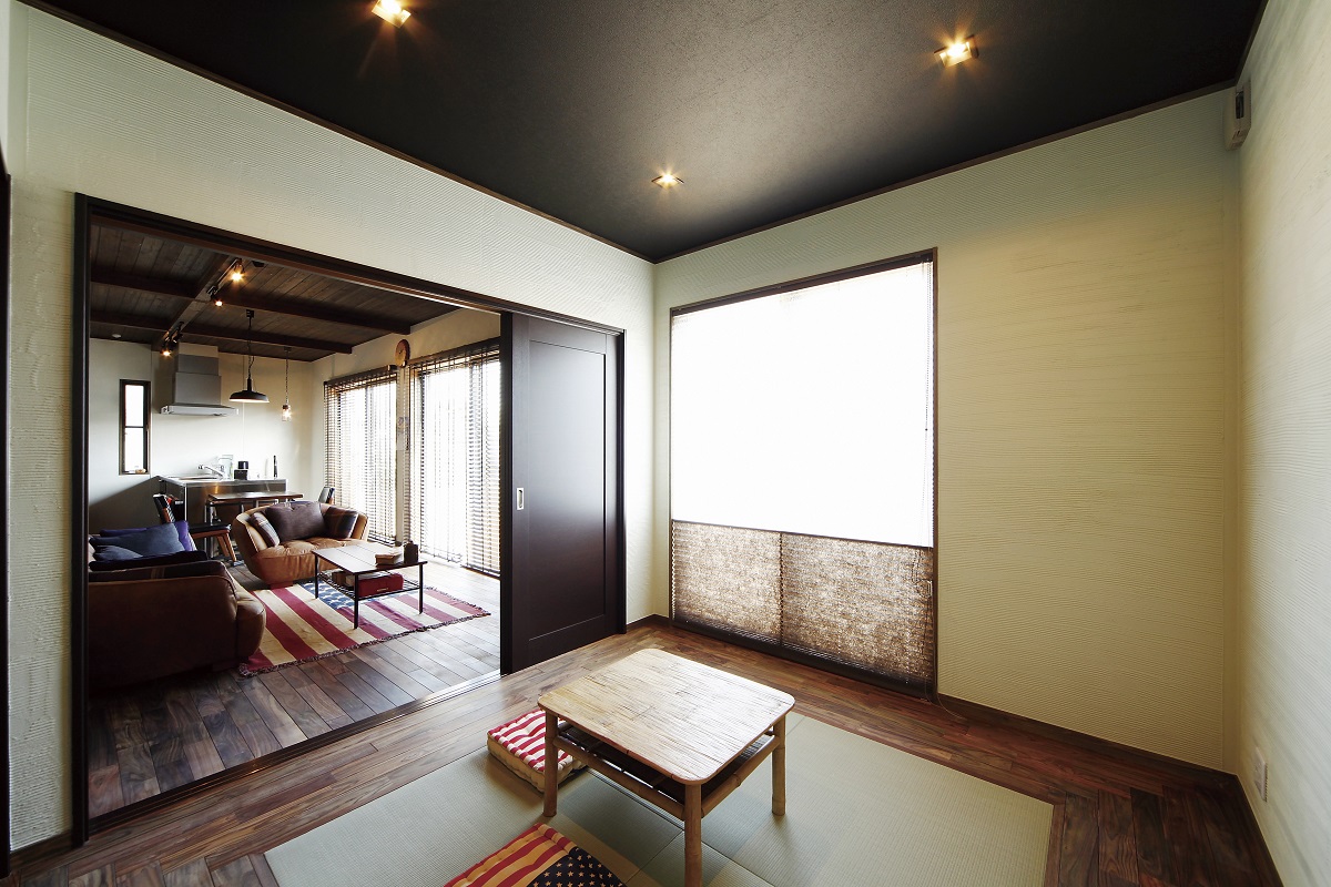 ワールドハウスさんの提案でリビングと馴染むよう畳のまわりを板張りにしました