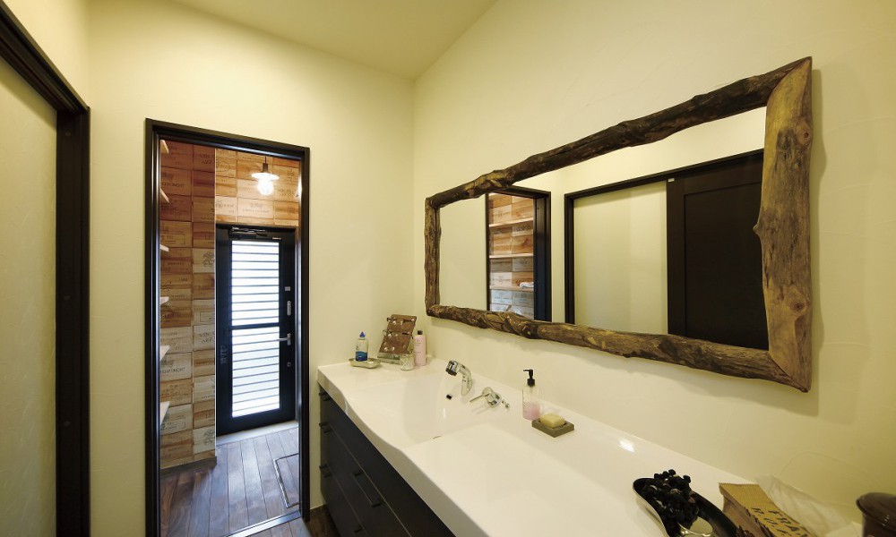 N様支給の鏡を主体にデザインしたパウダールームはまるでショップのよう
