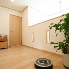 2Fホールは広めに確保して、吹抜けの気流を利用して洗濯物のスペースにも活用。