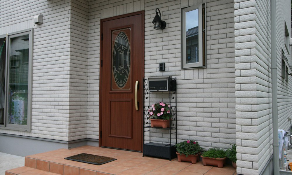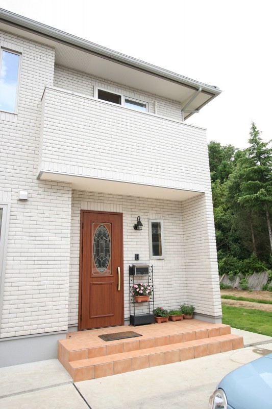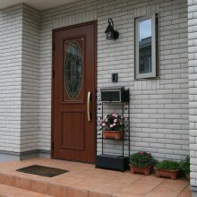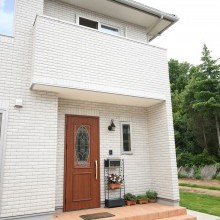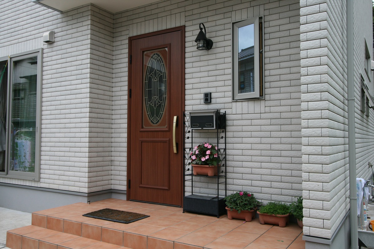 奥様のお好きなお花が映える落ち着いた玄関まわり