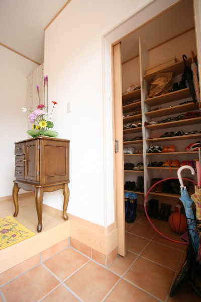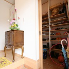 外まわりのものがしっかりと、たっぷり収納できるシューズクローク。