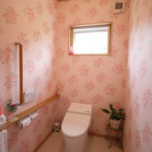 こだわりの内装でお気に入りの空間を叶えたサニタリー。お手洗いは家族やお友達などみんながが使うスペースだからこそ、ゆったりと気持ちよく過ごせる空間に