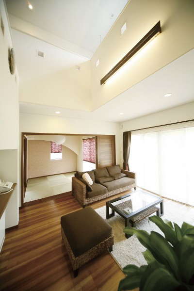 「1階のリビングはアジアンテイストな雰囲気が漂う空間にしたい」というAさんの要望どおり、フローリングやクロス、カーテンを厳選し、