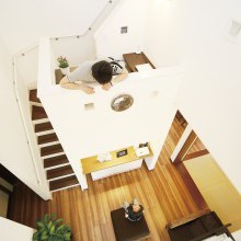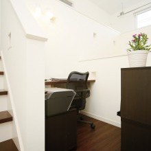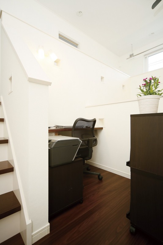 中2階にあたる部分にAさんの書斎を配置。個室ながらも籠らず家族とつながる空間だ