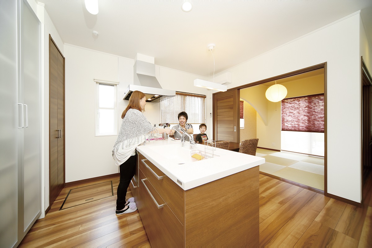 食事のあとに、ゆっくりリラックスできるようDKの正面に和室を