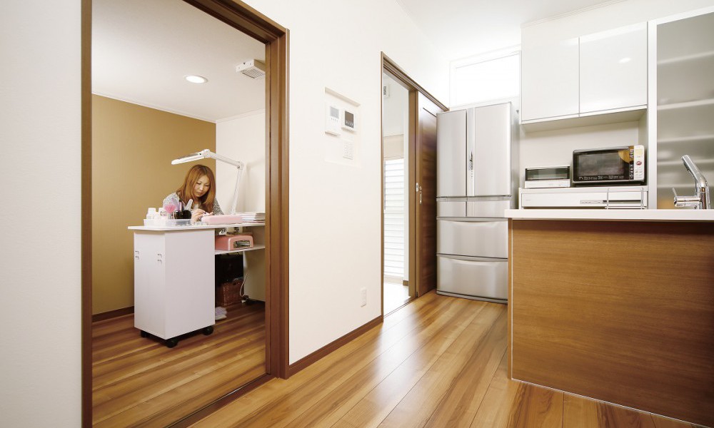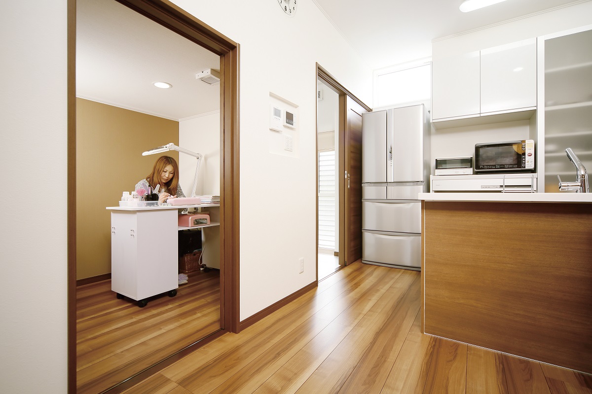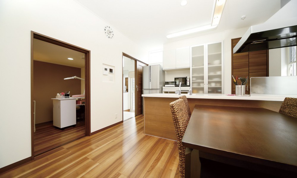 ダイニング・キッチン横の収納は、施工中に夫人のネイルルームへ