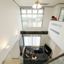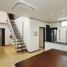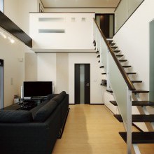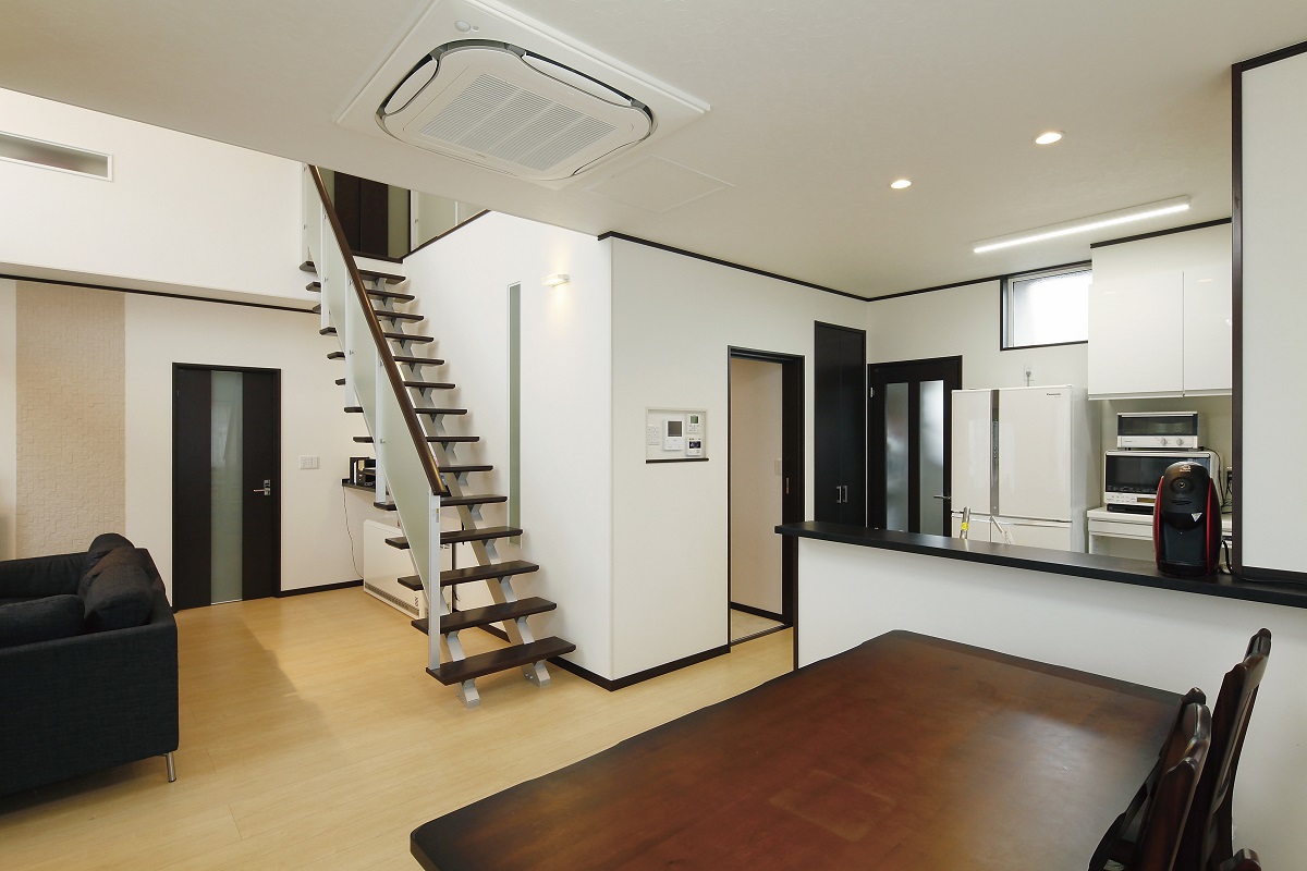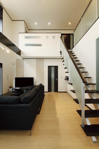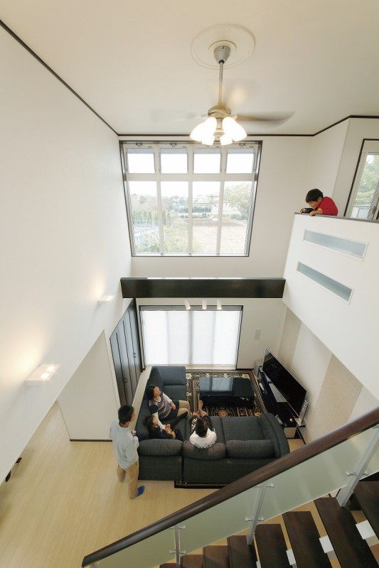 来客が多いH氏邸は、暮らし易さはもちろん、見栄えも重要。「漠然と『カッコいい家にしたい』と伝えたところ、明るさや構造面から吹き抜けを提案してもらいました。上下階とのつながりもあって子どもたちも大喜びです」とHさん