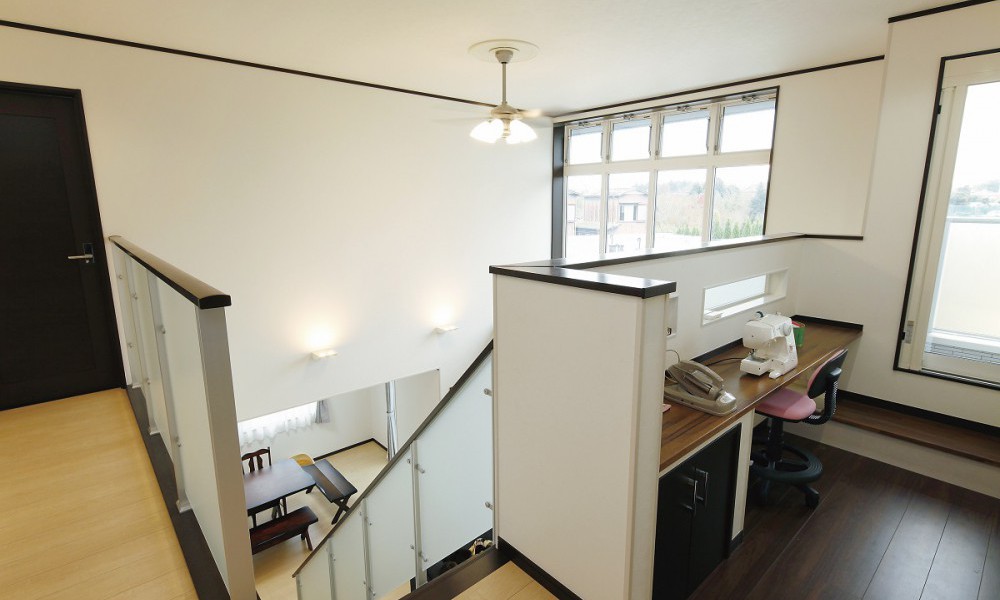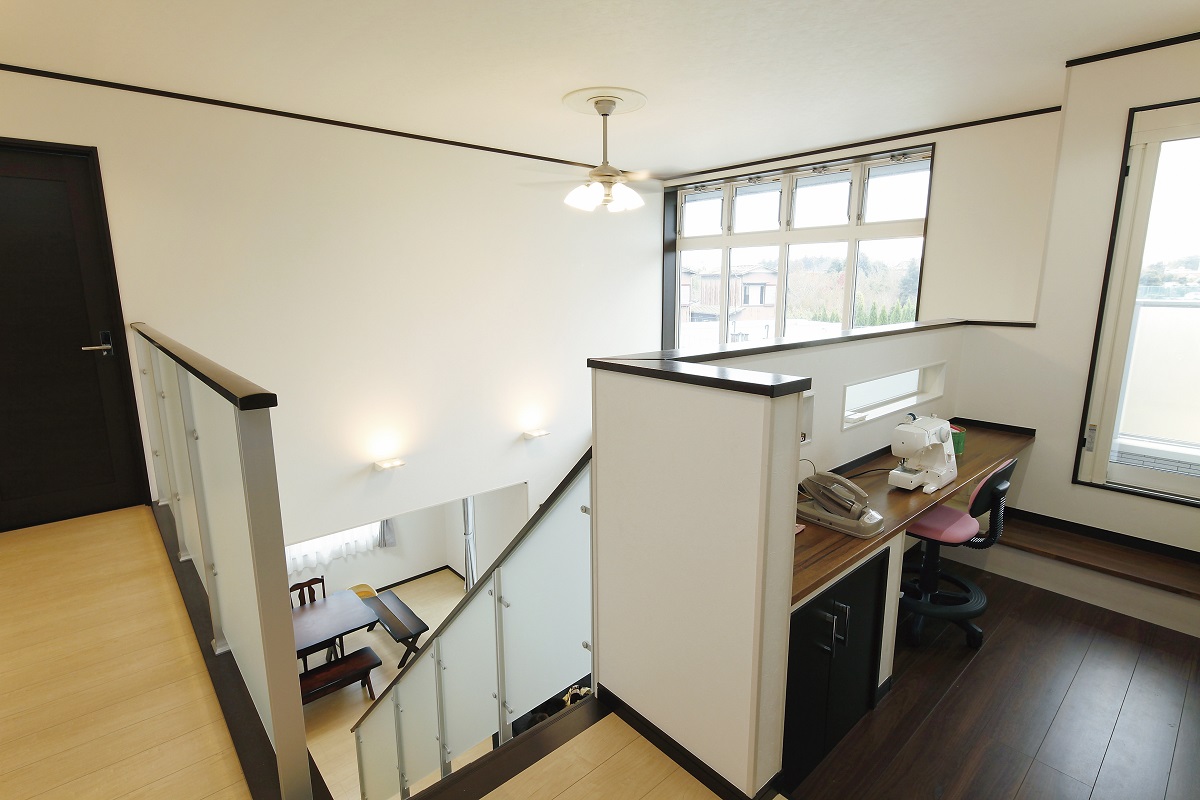 1階を見渡す奥さまの家事コーナー。「オープンなのに一人になれる場所っていいですね」