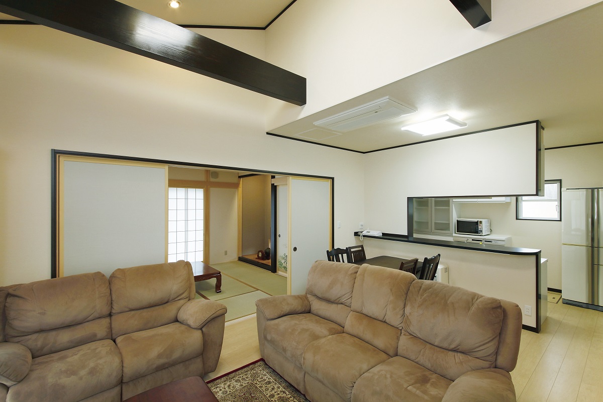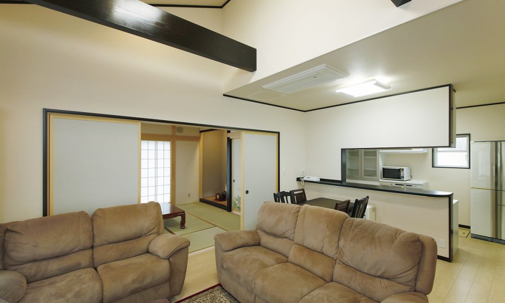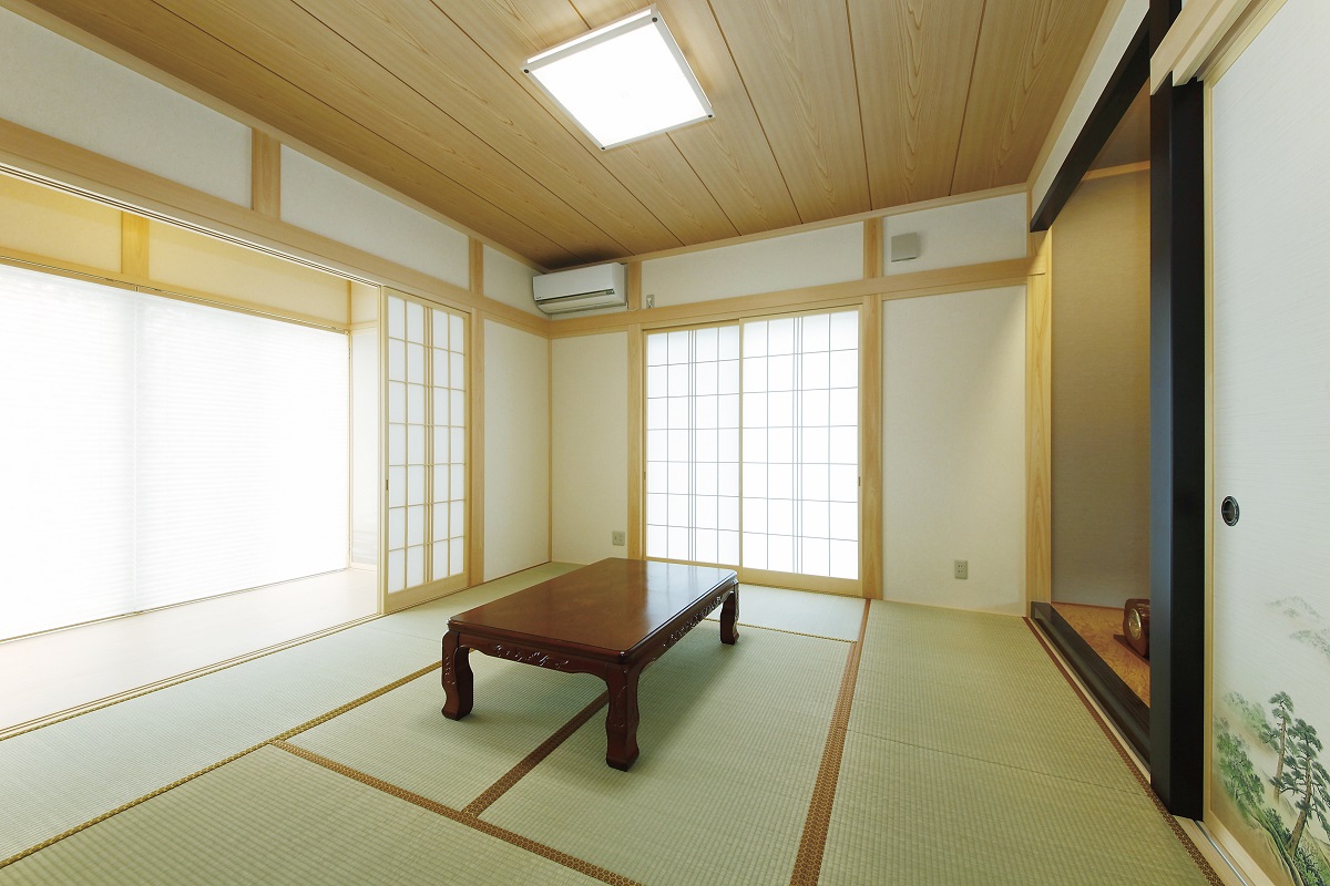 親世帯の和室は3方に窓があり明るい空間。広縁も心地よく、客間としても利用できる