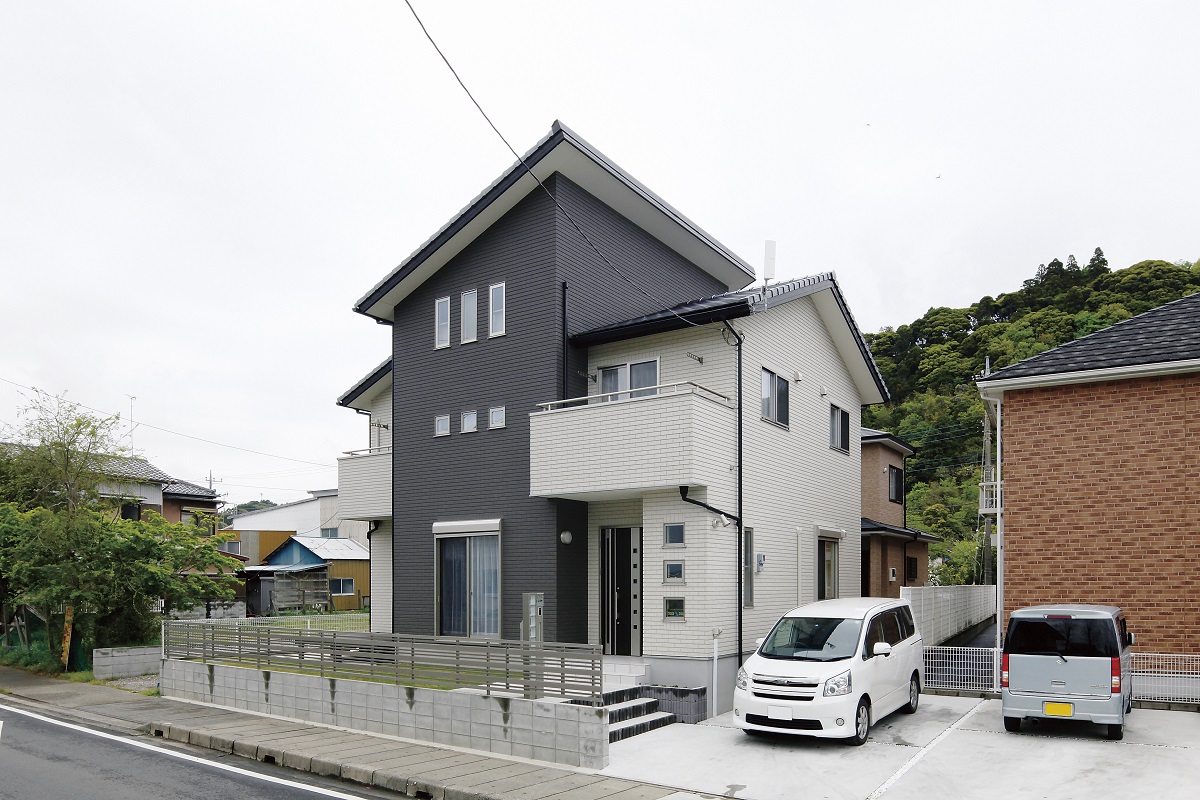 シンプルながらも存在感のある外観デザイン。ワールドハウスさんはタイルの外観が標準だったり、建物が丈夫で信頼できると地元でも評判です。