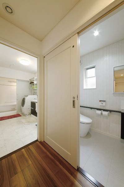 両親との同居も考え、1階の水まわりはバリアフリーに。回遊できる動線も効率的