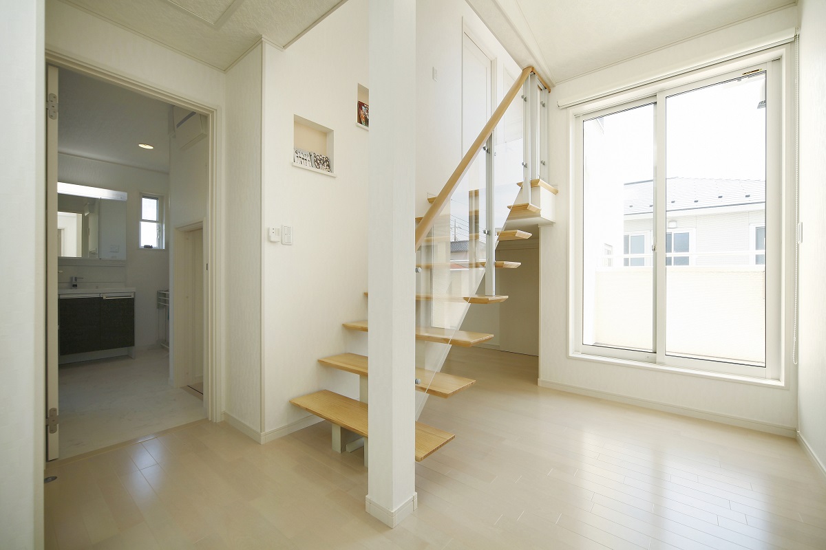 偵察気分でモデルハウス『レガーロ』を見学した際、スキップフロアなど独創的な空間使いに一目ぼれ。後から他社も見てみましたが、レガーロのインパクトを超えるものはありませんでした。要望どおりに作っていただいたので100%満足。使い勝手、動線もとてもよく家事が楽になりました。 スキップフロアを使った収納もたっぷり。部屋がきれいに保て、モノが増えても大丈夫です。