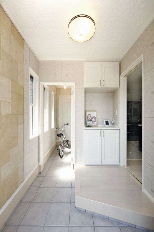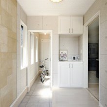 リビングと洗面室の両方への動線を確保した玄関ホール。安心してゲストを招ける設計