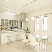 リビングとDKはコートを囲むように配置。各々が独立性を保ちながら、気配を感じるように設計