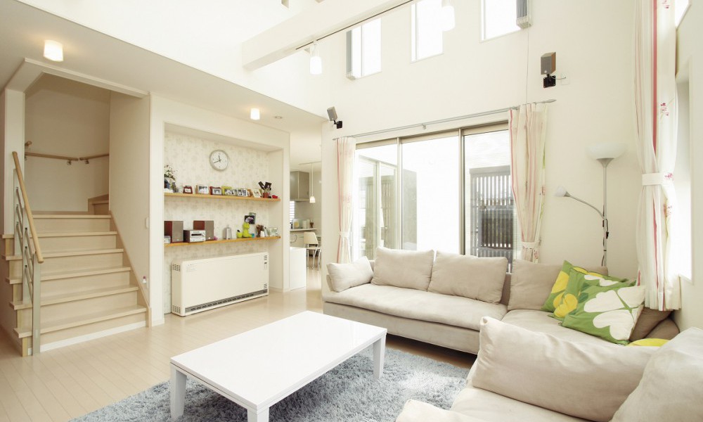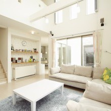 吹き抜けに降り注ぐ光と風に癒される コートでゆったり寛ぐ安らぎの住まい