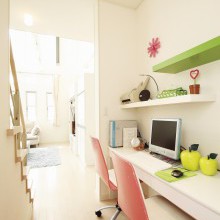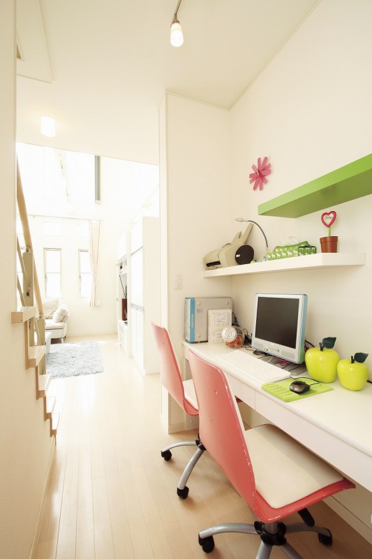 リビング脇に設けられたパソコンコーナー。洗面所などぐるっと回れる回遊式動線となっていて便利