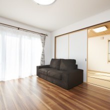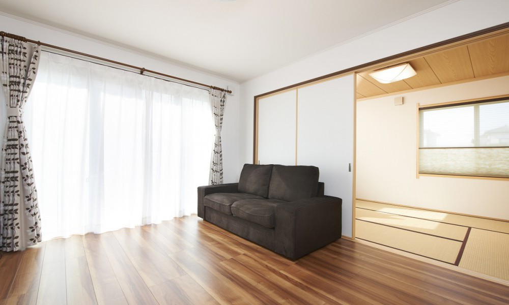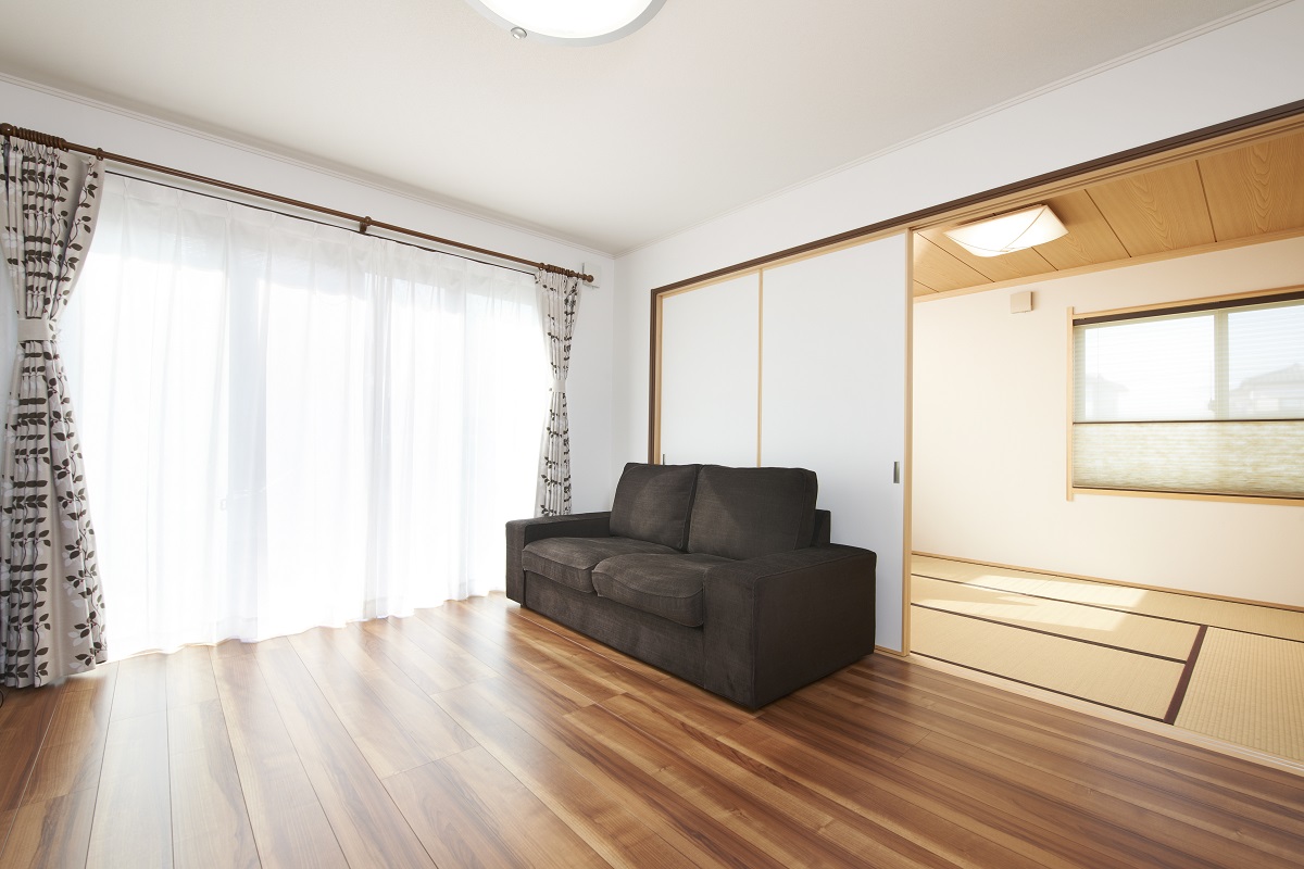 リビングルームはやはり家族の寛ぎのスペース。素足に心地よい上質な床材は標準仕様