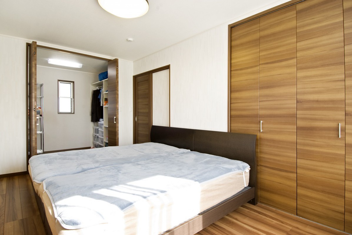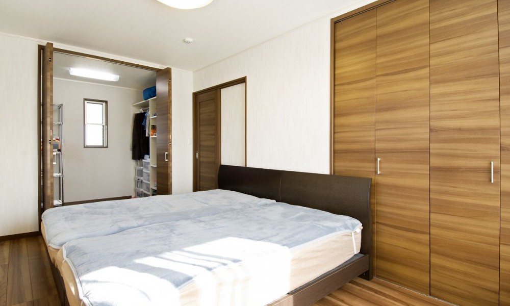 主寝室にはタンスも置けるほどのたっぷりとした広さの収納スペースを確保