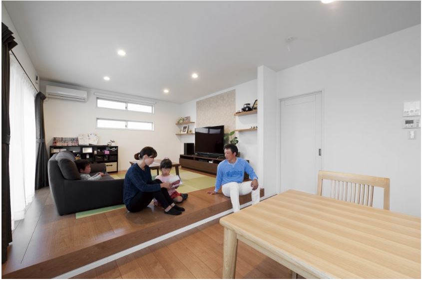 子どもたちと過ごす時間を大切にしたいという思いから、家族のコミュニケーションを一番に考え広いLDKに。リビングの中央を畳にして使いやすさも兼ね備えています。