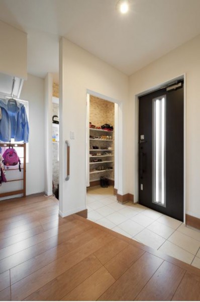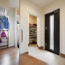 シューズクロークのホールには上着やバッグを掛けられるようにしています