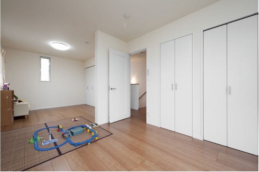 広い子供部屋は将来は2つの部屋に分けられるように、子どもの成長に合わせて使い方を工夫