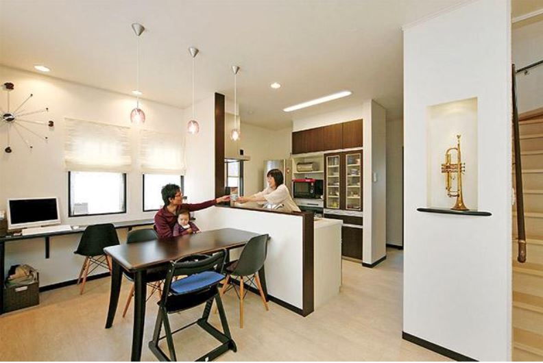 A. 1階は家族が過ごす空間なのでオープンな空間に、2階は寝室や趣味部屋など目的に合わせて部屋を分けました。階段室が狭く見えないよう手すりにするなど見え方や雰囲気にもこだわりました。