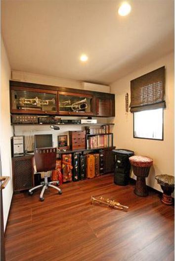 趣味のトランペットを楽しむ音楽部屋。防音対策をしているのでご近所への音漏れも安心