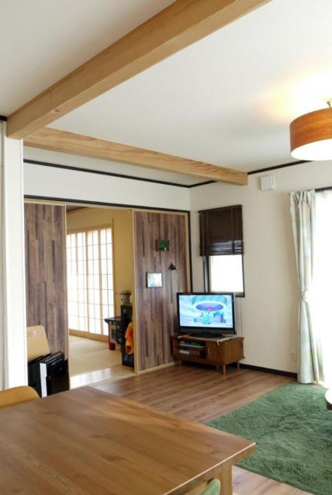 LDKの雰囲気をまとめているのが、梁のアクセント。木目の存在感が落ち着きのある空間を演出します。