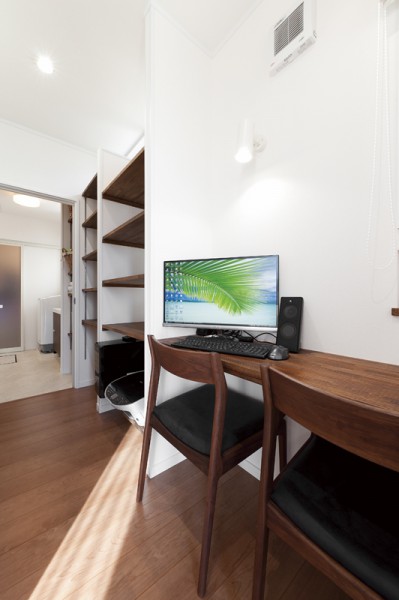 キッチンと洗面の間に配置した書斎兼家事スペース。