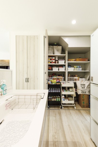 階段下をアレンジした大容量のパントリー