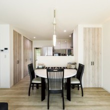 半円のダイニングテーブルが食卓を和やかに演出