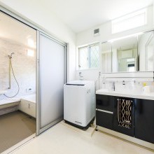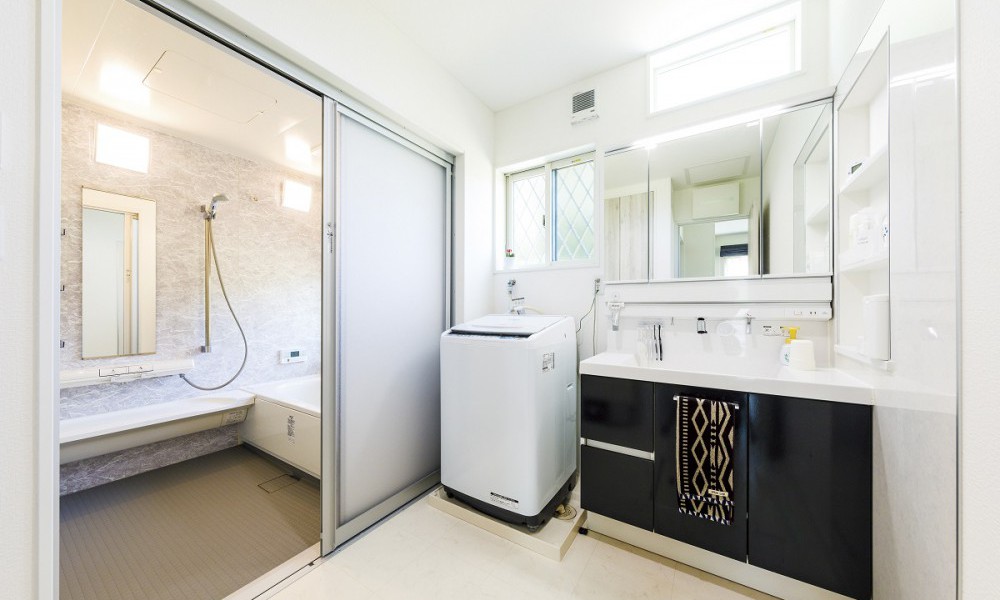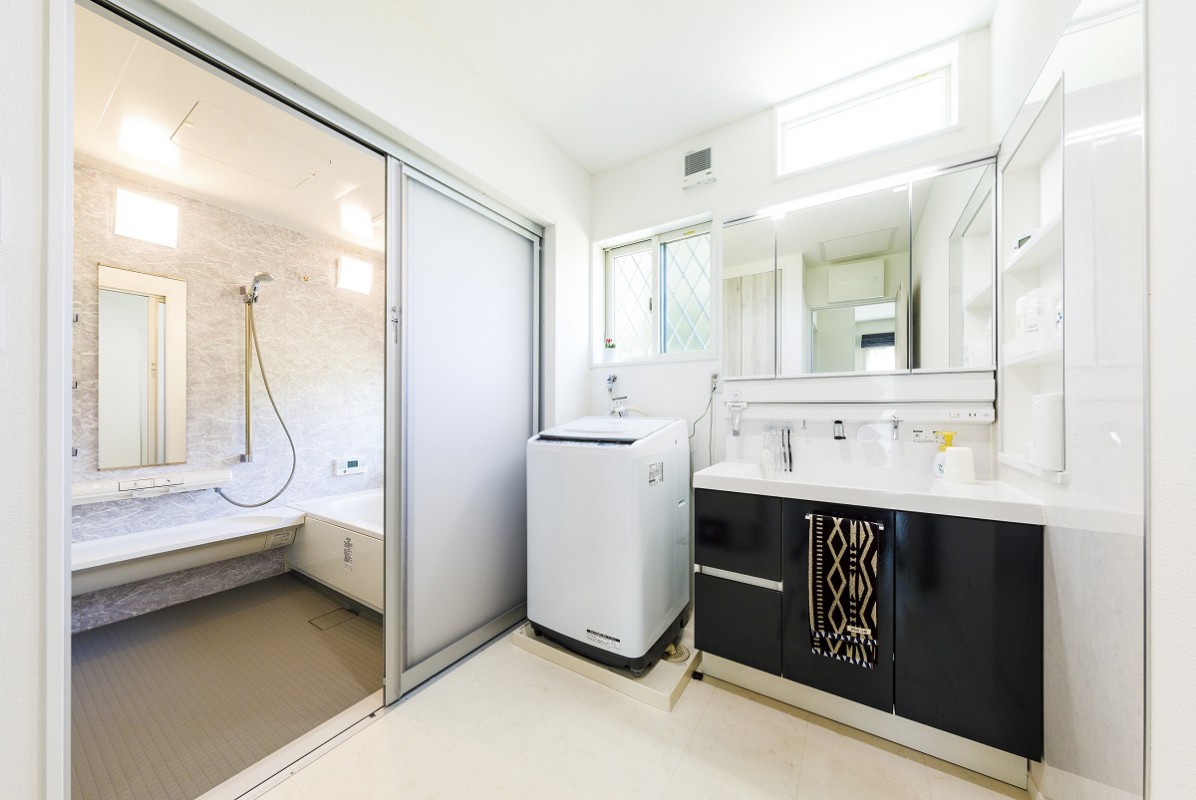 清潔感を重視した明るい洗面脱衣室