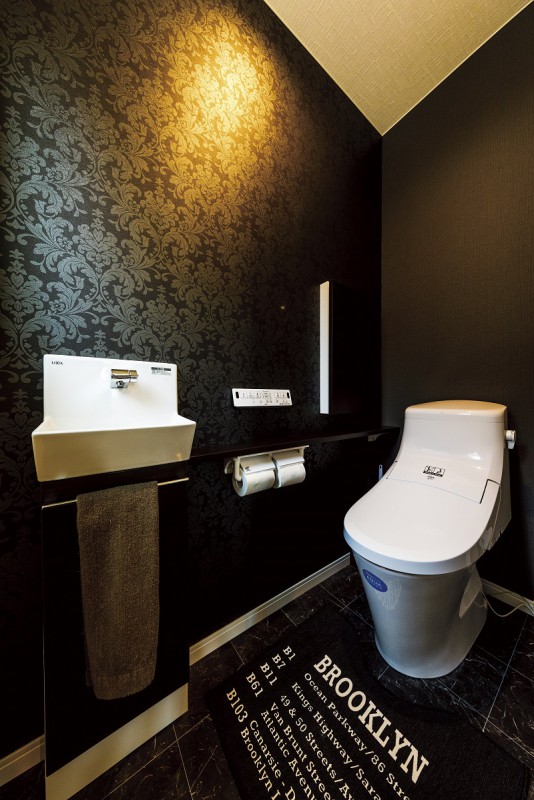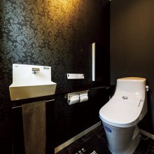 高級感のあるブラック&ホワイトのレストルーム